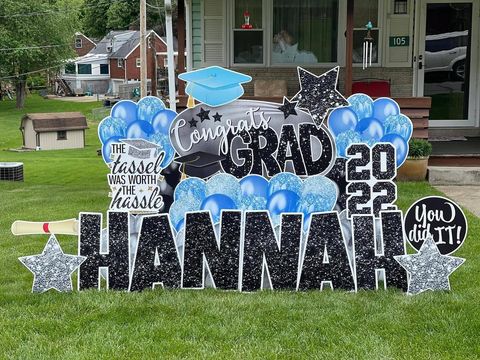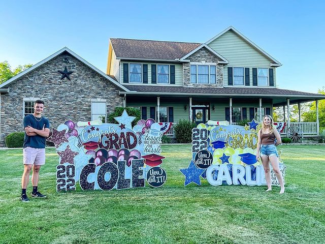 Yard sign rentals are on a daily basis, though additional days are available for a fee. On our reservation form you will give us all the required information. The install team from Valley Garden Greetings will set up your yard sign the evening before the event or celebration. Please do not remove the signs, as the team will take care of removing the display as well. We absolutely love pictures of the signs and you with the sign, please send images to any of our social media accounts or on the our contact form.